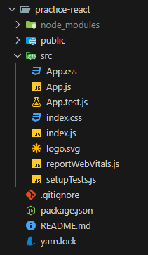 - `index.js` : 앱의 시작점! `App.js`를 HTML의 `root`에 넣어주는 역할