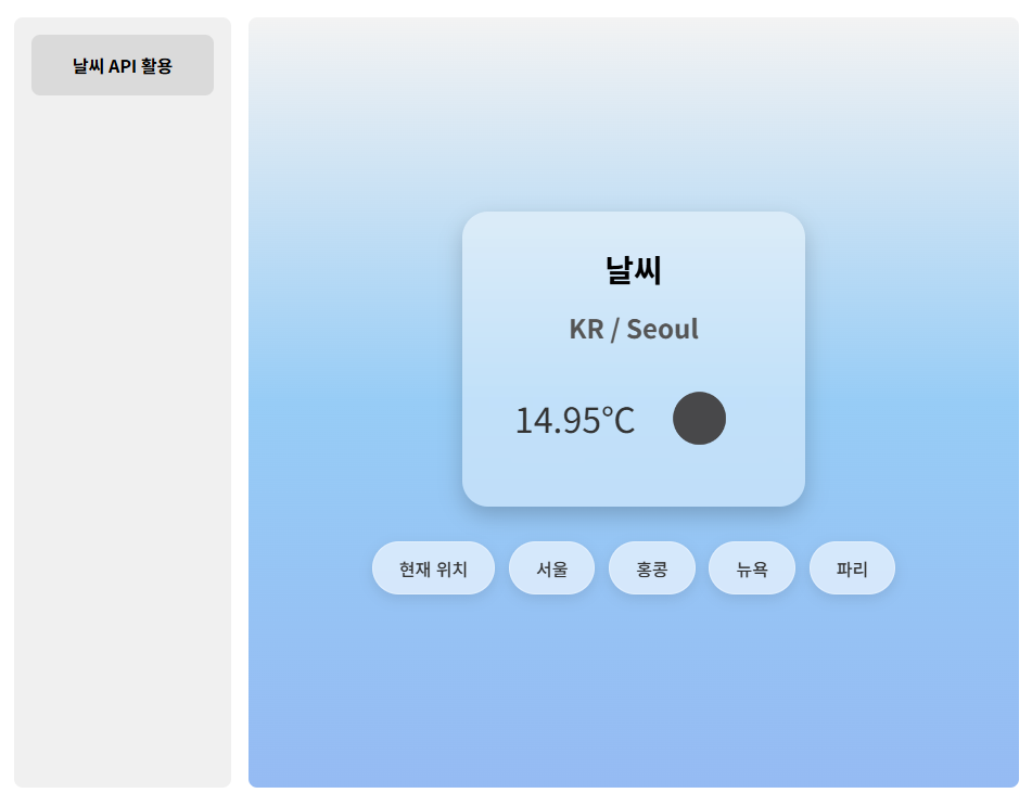 - 얻은 좌푤르 가지고 `getWeatherByCurrentLocation` 함수를 호출해서 날씨 정보를 가져온다.